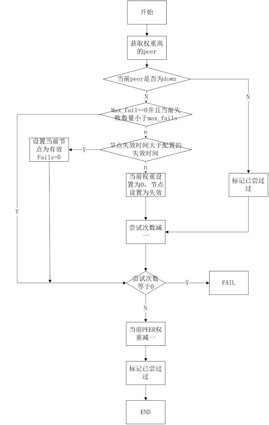 Nginx 默认判断失败节点状态以connect refuse和time out状态为准,不以HTTP错误状态进行判断失败,因为HTTP只要能返回状态说明该节点还可以正常连接,所以nginx判断其还是存活状态;除非添加了proxy_next_upstream指令设置对404、502、503、504、500和time out等错误进行转到备机处理,在next_upstream过程中,会对fails进行累加,如果备用机处理还是错误则直接返回错误信息(但404不进行记录到错误数,如果不配置错误状态也不对其进行错误状态记录),综述,nginx记录错误数量只记录timeout 、connect refuse、502、500、503、504这6种状态,timeout和connect refuse是永远被记录错误状态,而502、500、503、504只有在配置proxy_next_upstream后nginx才会记录这4种HTTP错误到fails中,当fails大于等于max_fails时,则该节点失效;